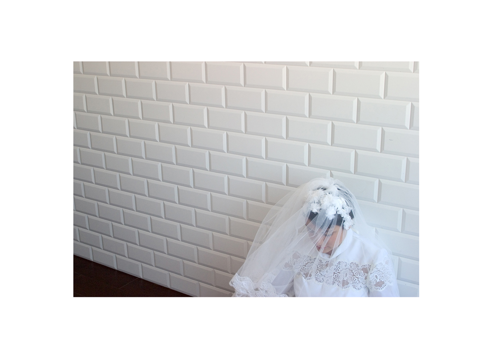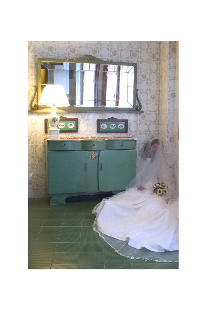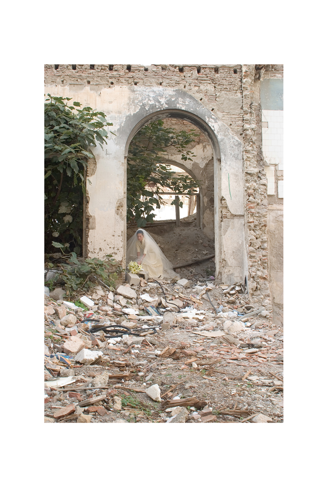 A la novia se la representa sola, sin la presencia masculina, no por ser mujeres abandonadas o dolidas, sino dentro de su presunción e individualismo, en escenarios diversos y escenificados que la encuadran. Toda esta escenografía, donde los límites de lo privado y lo público a veces se confunden y la complicación de las identidades nos vuelca hacia la idea narcisista de embellecernos a través de un vestido, concluye en una serie de imágenes donde la premeditación de la toma fotográfica crea un lenguaje propio.