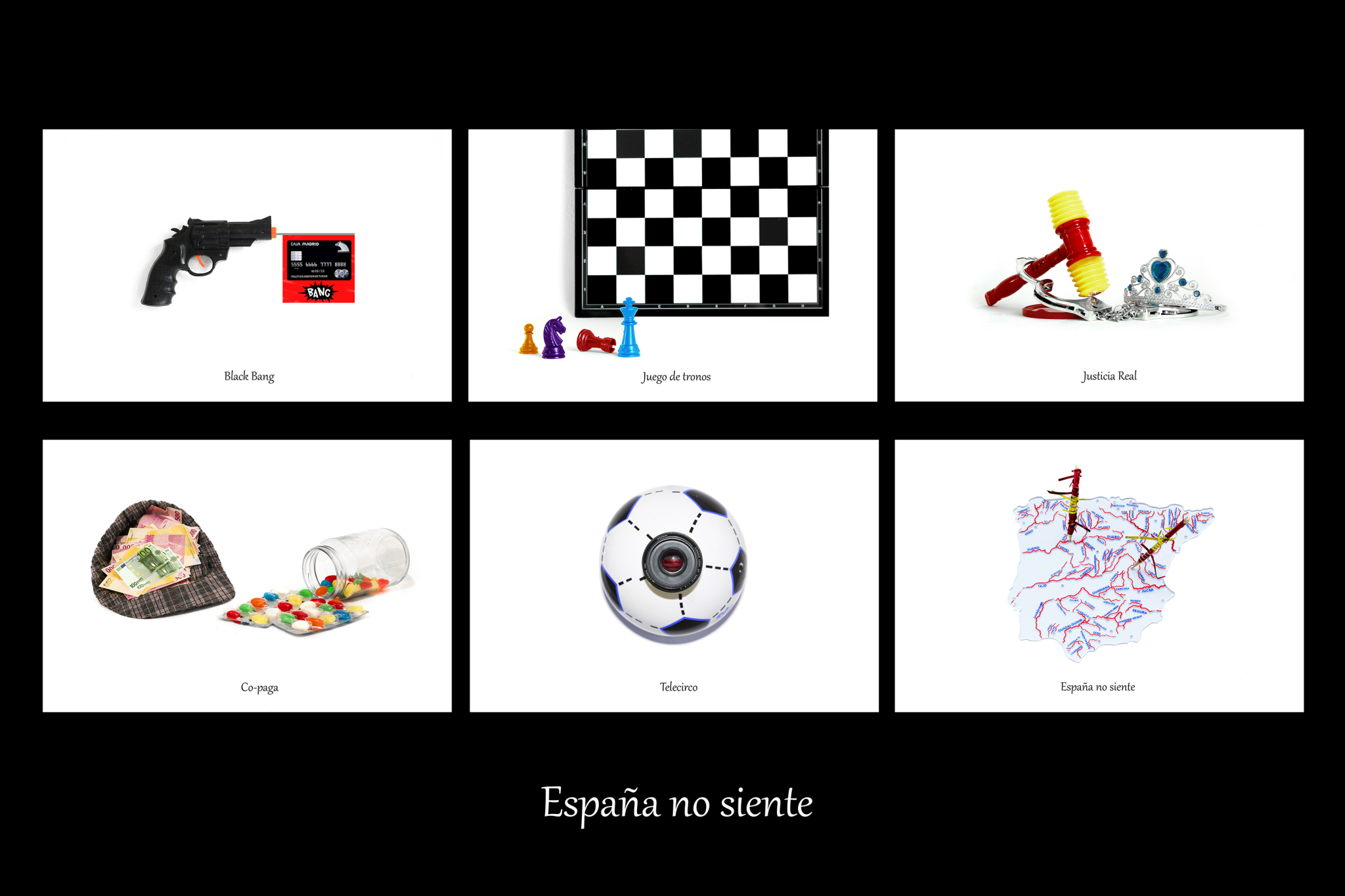 HISPANIA es un proyecto de poesía objetual presentado a modo de bodegón fotográfico que reflexiona acerca de la situación política española actual.
