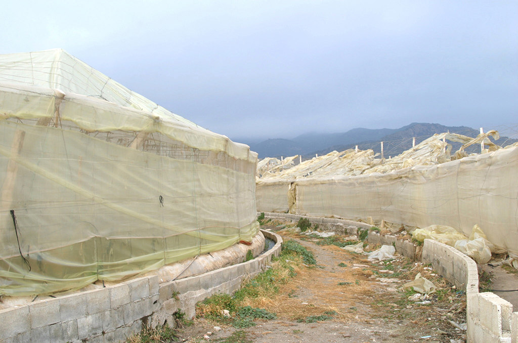 En las series “Cosecha amarga” y “De segundas”, que parten de un trabajo de fotografía e intervención anterior, “Invernaderos” (2005-2006), Laura evidencia a través de la metáfora el resultado de la productividad en el poniente almeriense.