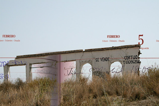 «Tiempo Muerto es una construcción de tiempos; una reordenación. Confluyen en las piezas que conforman el proyecto distintos espacios y distintos tiempos. Por un lado, los espacios contenidos en las fotografías, el tiempo en que fueron tomadas y el tiempo contenido en fragmentos de agendas personales escaneadas e integradas en dichas fotografías. Por otro, la sistematización, que es la acción de ordenar según un sistema e implica la aplicación de reglas y un intento de racionalización de ese espacio-tiempo. También el espacio que ocupan estas series fotográficas y el tiempo necesario como proceso de construcción del proyecto. El objeto fotografiado es siempre el espacio a través de ventanas de vehículos en movimiento.