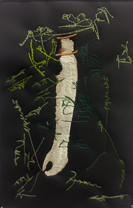 La mano ortopédica de mi padre es para mí la belleza. Por un lado, el simulacro de algo que no está. Y por otro, un resto valioso de mi infancia que junto a otros objetos, guardo en un altillo. Ya no forman parte de lo cotidiano. Así que busco un halo de irrealidad que los envuelva para pasar a ser representación pura. Los bordados, que son memoria, los deposito en la naturaleza. Anochece y los veo en sueños. Hay una luz cálida y misteriosa que proyecta sombras en su superficie. Lo que quiero es darles la vuelta y ver el reverso del bordado, un código: cómo se construye la representación de esas imágenes que son cosas que ya no existen.