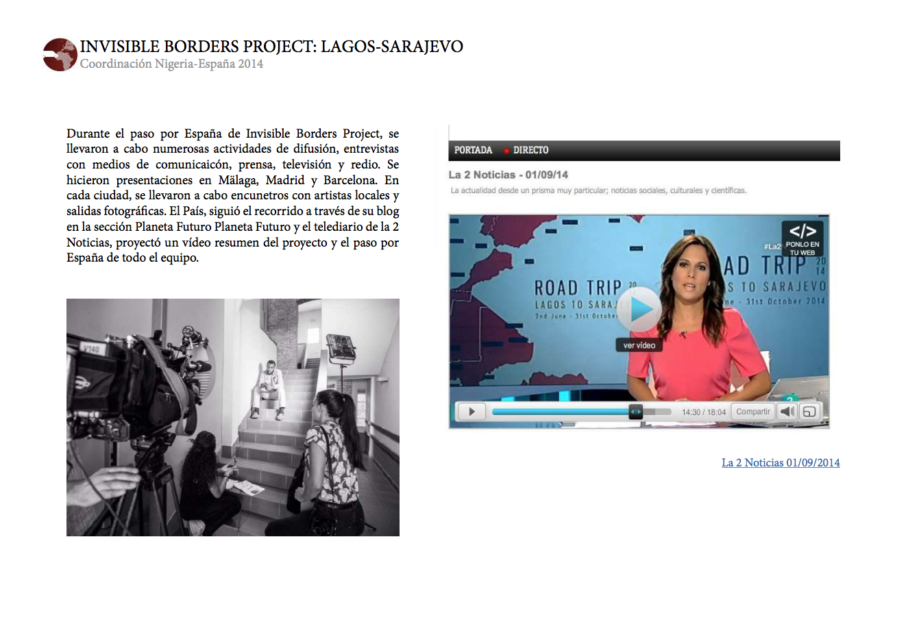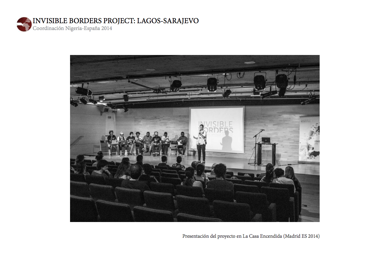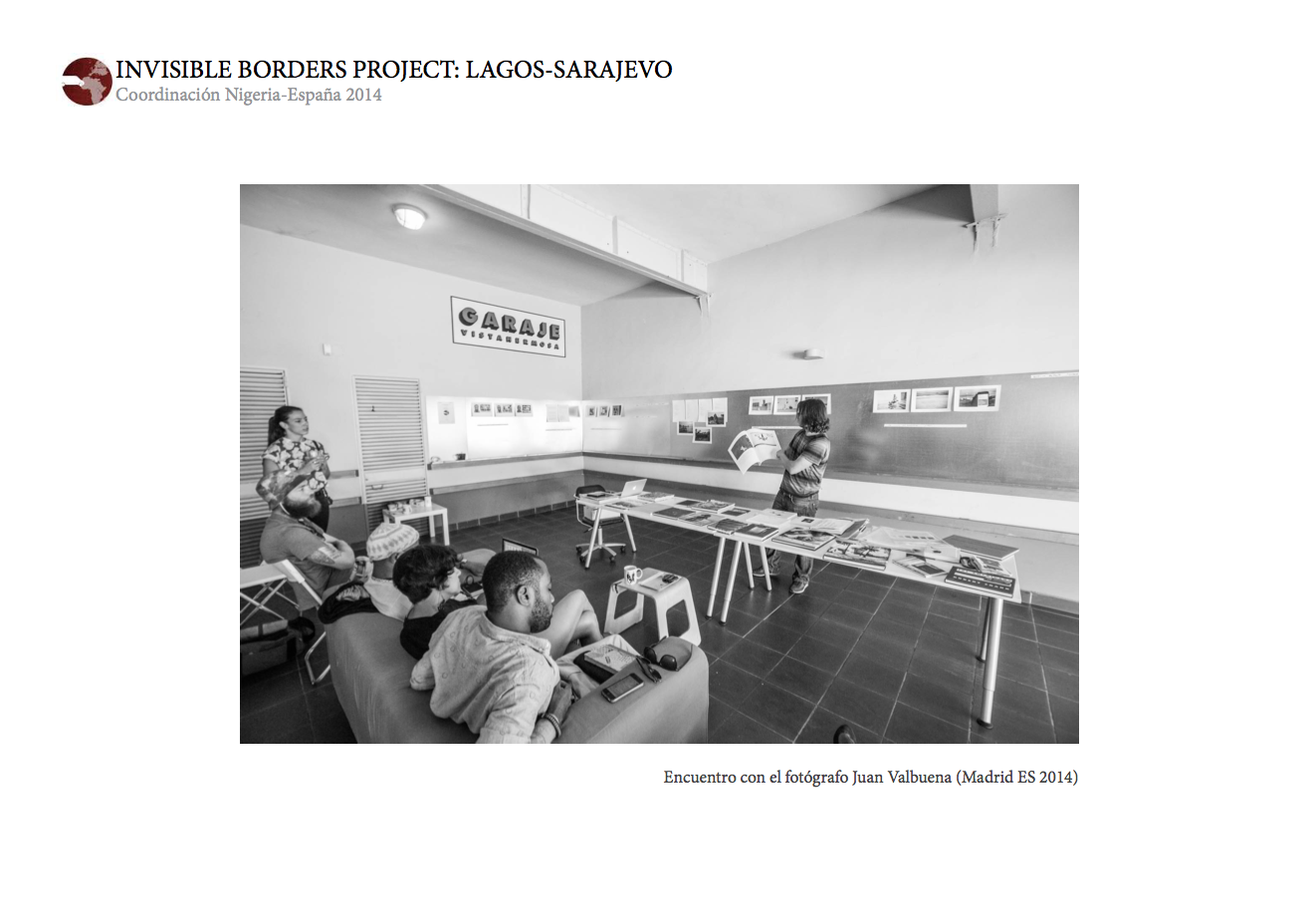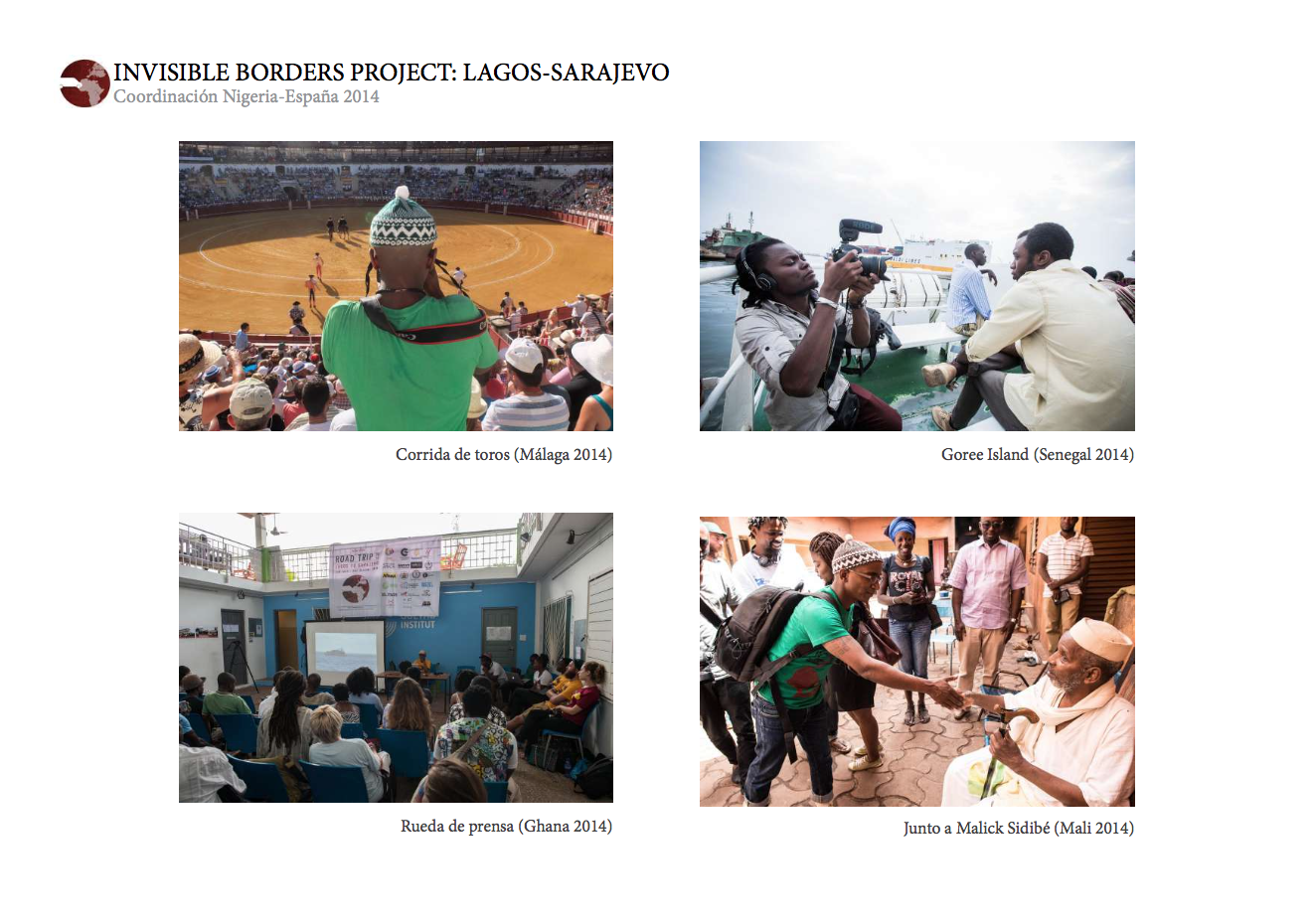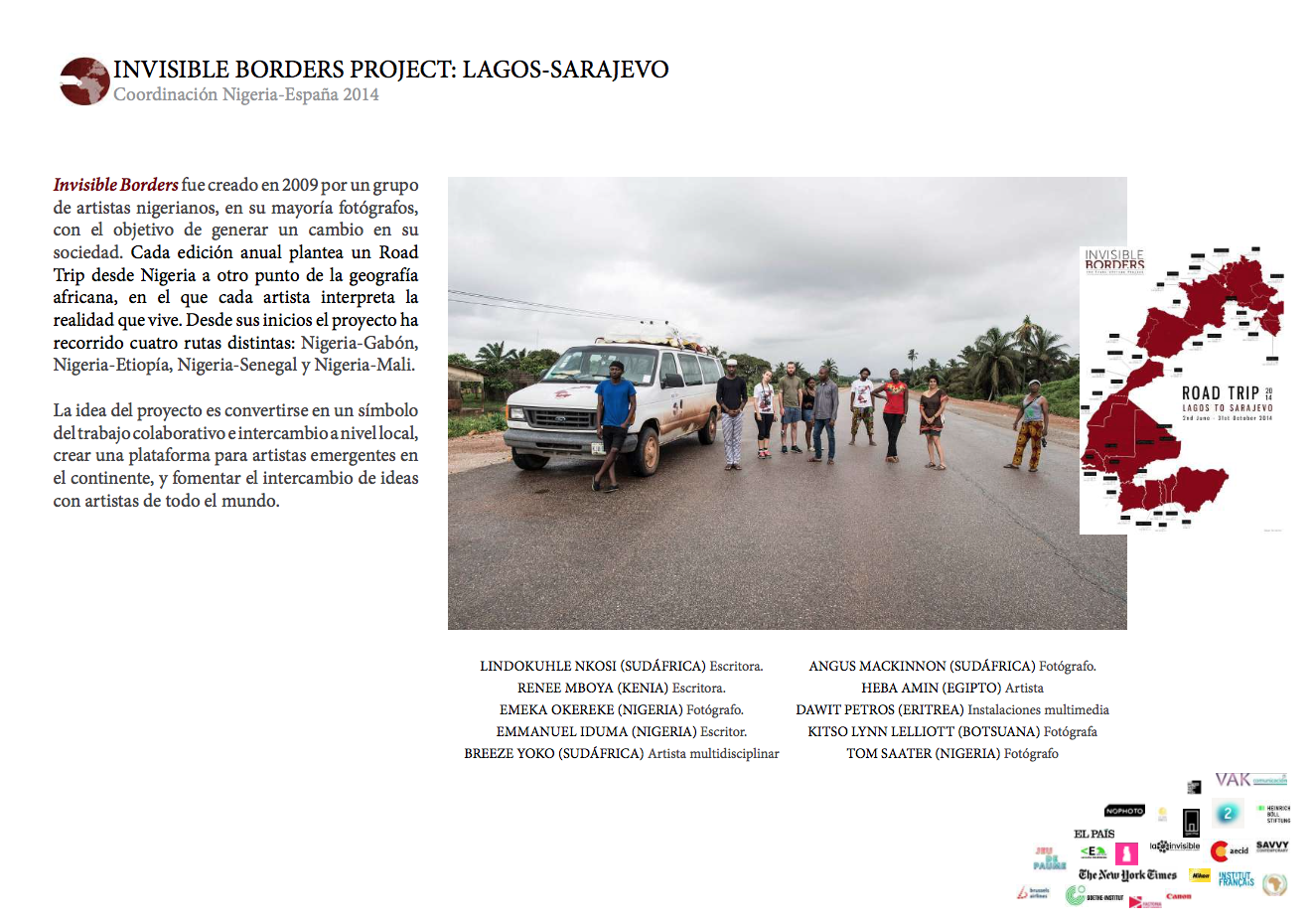 INVISIBLE BORDERS PROJECT: LAGOS-SARAJEVO fue creado en 2009 por un grupo de artistas nigerianos, en su mayoría fotógrafos, con el objetivo de generar un cambio en su sociedad. Cada edición anual plantea un Road Trip desde Nigeria a otro punto de la geografía africana, en el que cada artista interpreta la realidad que vive. Desde sus inicios el proyecto ha recorrido cuatro rutas distintas: Nigeria-Gabón, Nigeria-Etiopía, Nigeria-Senegal y Nigeria-Mali.