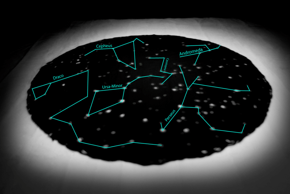 «Constelaciones» es el título de la instalación ideada por Lola Guerrera a partir de la observación de unos de los principales hayazgos arqueológicos de la Villa, una estatua que representa el mito de Andrómeda y Perseo. Justamente dos de las constelaciones visibles en la época del año en el que realiza su primera obra para el proyecto.