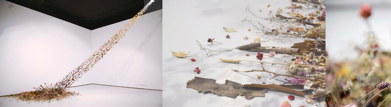 Genero vanitas improvisadas a gran escala, gracias a un trabajo de campo en el que recopilo y clasifico todo tipo de hojas, ramas y flores que voy encontrando por las distintas ciudades por las que paso.»