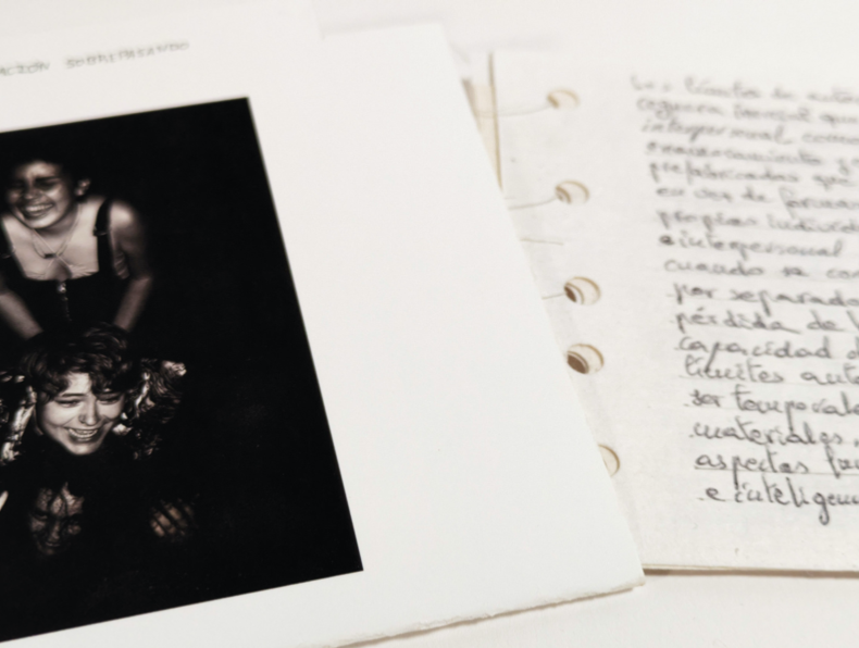 Esta indagación la cual evoluciona constantemente, ha sido realizada en conjunto, junto a Victoria Ortiz Téllez. Ambas nos hemos retroalimentado fotográfica y conceptualmente de forma profunda, descubriendo en nuestra inercia la foto-performance al vivir la mayoría de fotografías desde una inmersión en el espacio natural, interacción de la cual hemos sido consciente posteriormente. No preparamos la toma, sino que llevamos a cabo la indagación en el vivir. En ese juego se realiza la fotografía que luego va a ser trabajada también en la edición.»